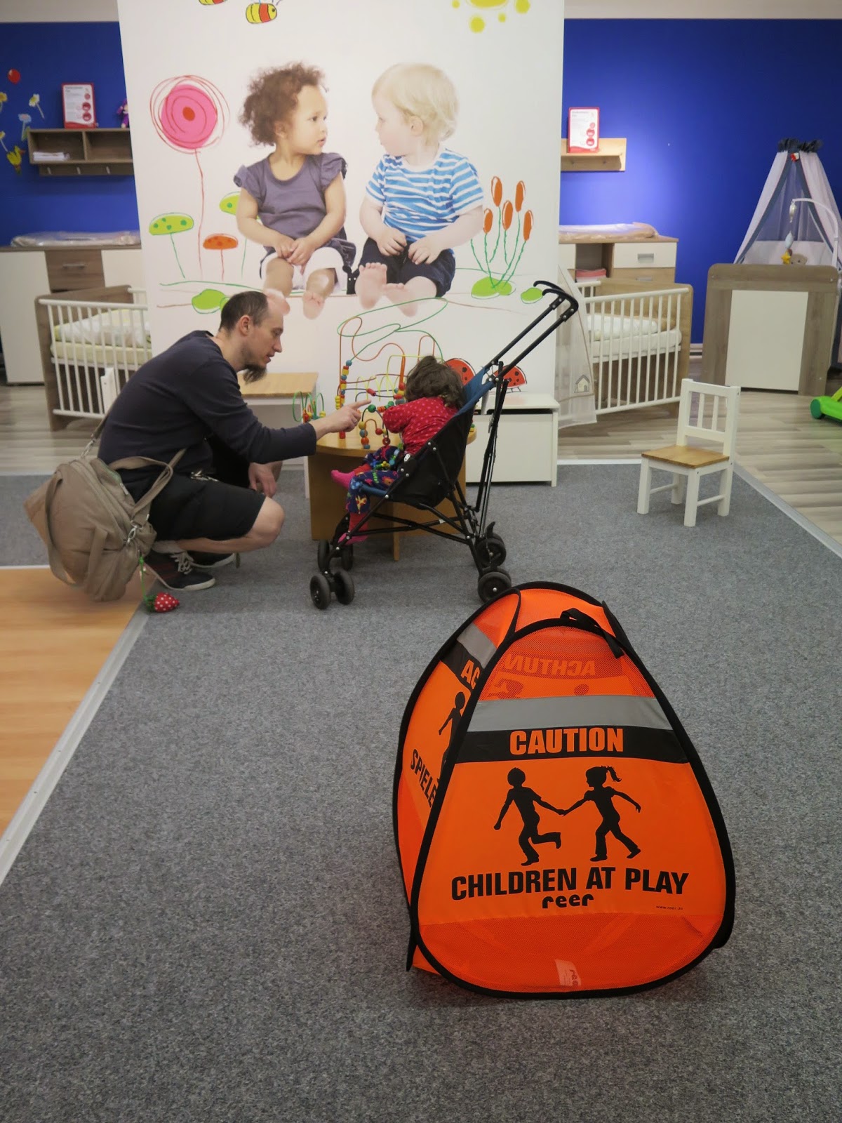 Cranberry) infrage kam, alle anderen können die Probefahrt hier noch einmal finden. Genau wie damals zeigte sich lustigerweise direkt die beruhigende Wirkung des Buggys als die Dame in ihrem Mini-Klapp-Buggy zu weinen anfing, vielleicht auch wegen der zur Zeit manchmal vorkommenden Bauchschmerzen. Die Damen des Spielwarengeschäfts waren gerade mit der Montage fertig geworden, also Beerchen flugs hinein gesetzt, und ab die erste Runde durch den Laden. Die Räder müssen halt einfach rollen, und dann noch diese Farbe…! Zumindest war dann wieder Ruhe im Passagierbereich.